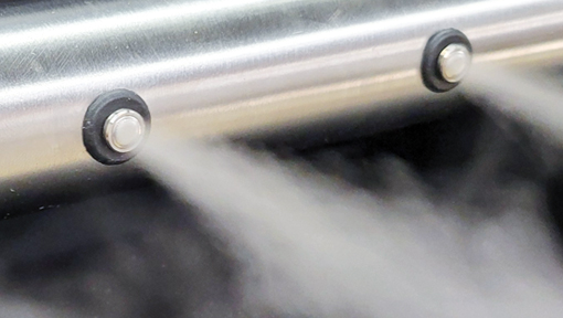 5-micron dry fog nozzles raise humidity levels throughout the case protecting produce.